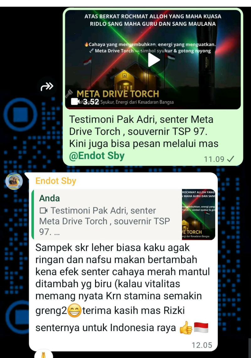 A: Meta Drive Torch menggunakan frekuensi cahaya terkalibrasi yang berdampak pada energi tubuh dan psikologi pengguna — bukan sekadar alat penerangan.